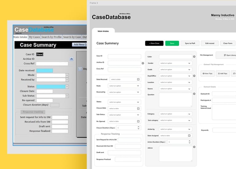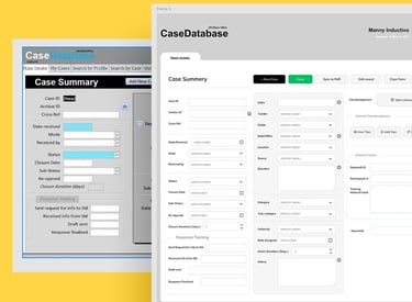 A modernization of a legacy “CaseDatabase” interface into a cleaner, more structured, and faster workflow for intake and case tracking